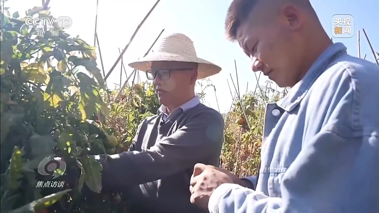 見到楊起鴻時,他正在一片結滿西紅柿的田間。如果不是親眼所見,很難想象就在幾年前,這片果實累累的土地,還是一片寸草不生的荒地。