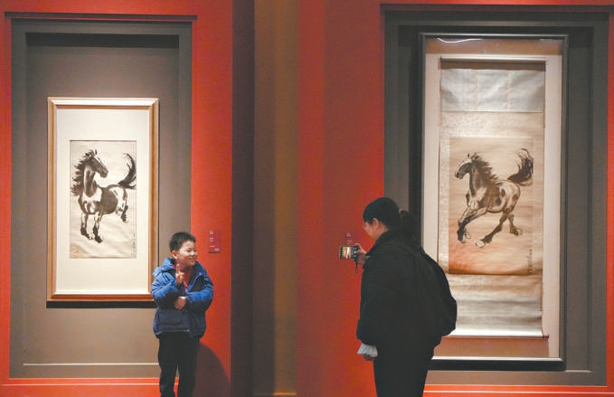 觀眾在徐悲鴻《奔馬》前留影。北京日報記者 安旭東 攝