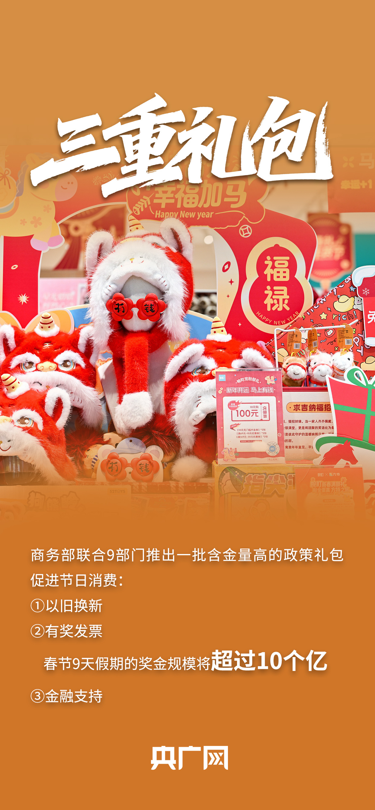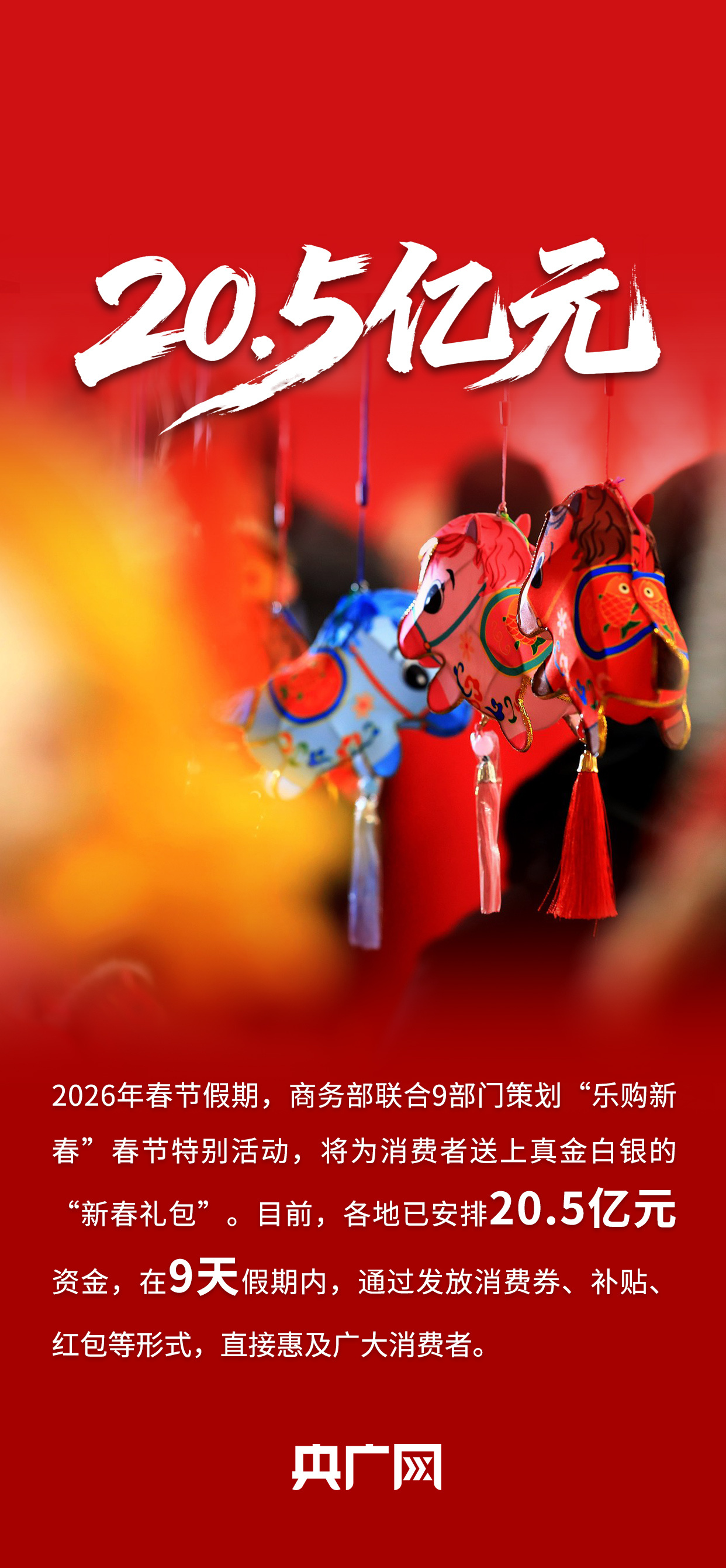 2月11日上午10時(shí),國務(wù)院新聞辦公室舉行新聞發(fā)布會(huì),相關(guān)負(fù)責(zé)人介紹2026“樂購新春”春節(jié)特別活動(dòng)、保障春節(jié)市場供應(yīng)有關(guān)情況,并答記者問。會(huì)上介紹,超20億元“新春禮包”即將派送,春節(jié)9天假期有獎(jiǎng)發(fā)票的獎(jiǎng)金規(guī)模將超過10個(gè)億……戳圖!一組關(guān)鍵詞讀懂“樂購新春”。