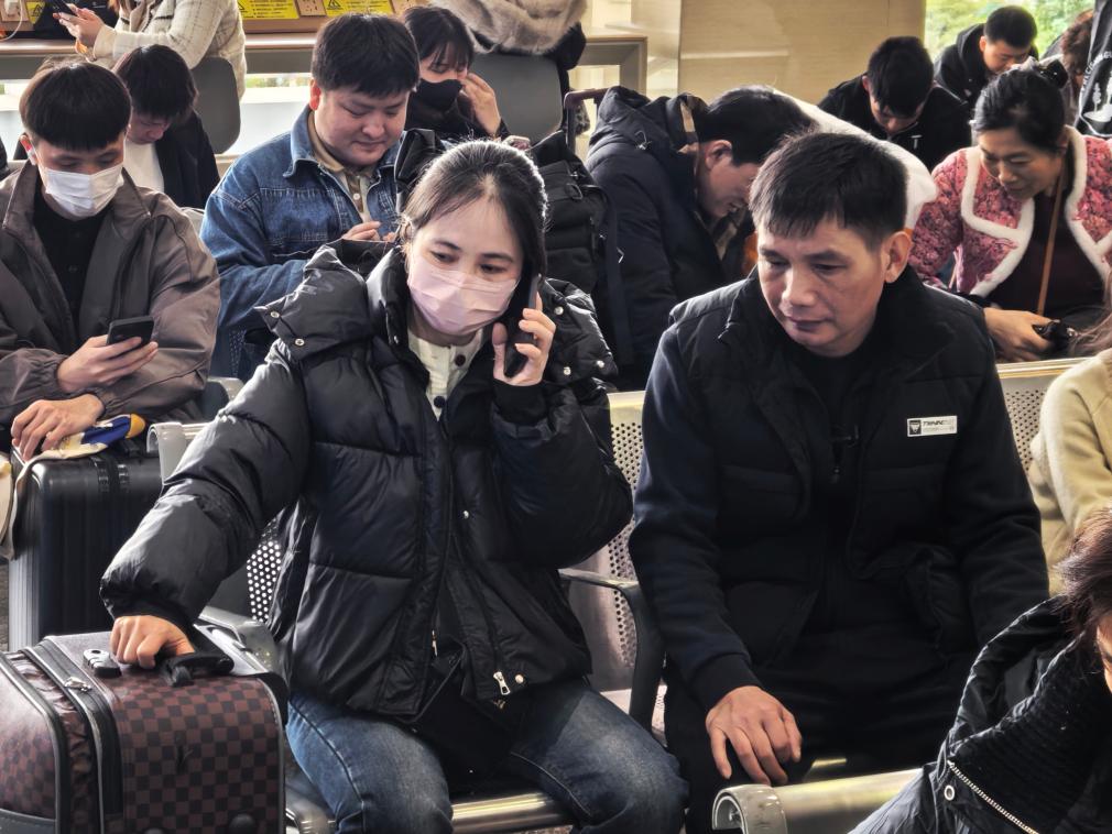 李志龍、韋玲冰夫妻在車站候車。新華社記者王楚然 攝