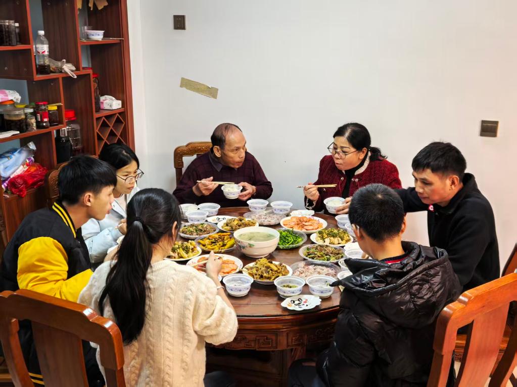 一家三口的小汽車在南寧市武鳴區(qū)的一處小區(qū)停了下來。上樓進(jìn)屋,親戚們?cè)缫衙疃鄷r(shí),熱乎的飯菜擺滿了餐桌。