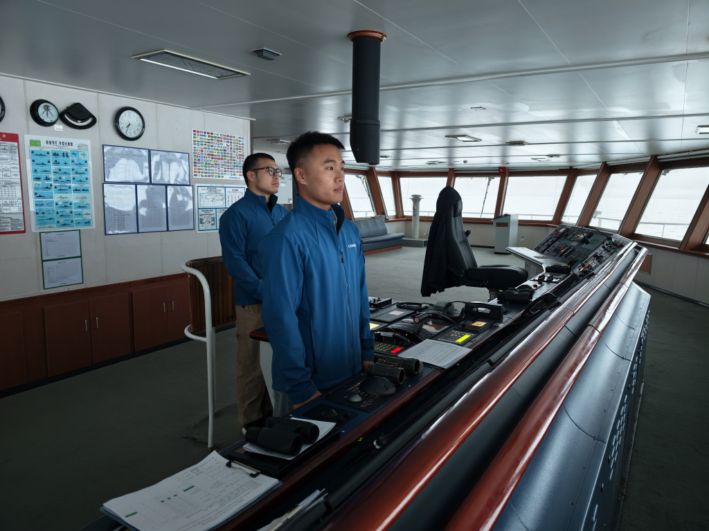 “第一次來南極,滿是新奇;現(xiàn)在,更多是思考如何把工作做得更好?!彼?fù)責(zé)航行值班和全船消防救生設(shè)備管理,冰區(qū)航行時精神高度集中,“越了解,越敬畏”。