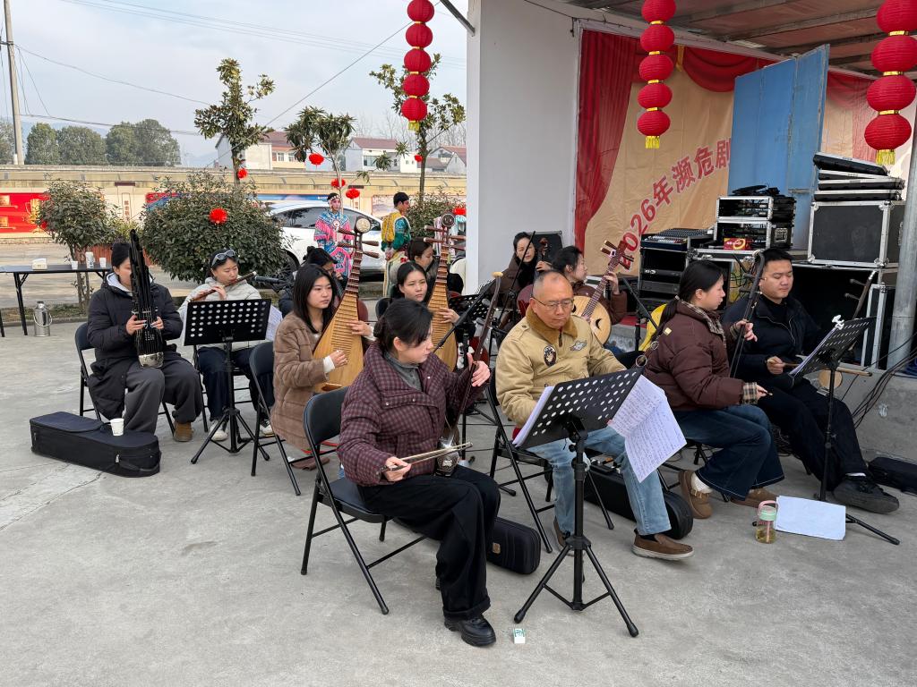 圖為正在配樂的漢中市南鄭區漢調桄桄傳承發展中心演職人員。新華社記者劉彤 攝