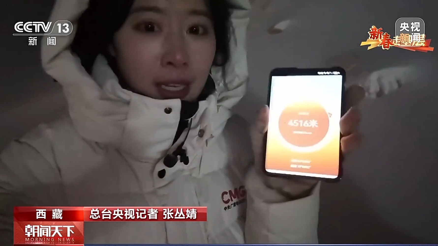 總臺央視記者 張叢婧:現在海拔超過了4500米,此時溫度是-20℃。