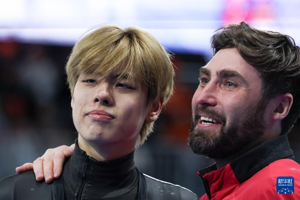 2月17日,中國(guó)隊(duì)選手劉瀚彬(左)與主教練李琰在賽后。新華社記者 李京 攝