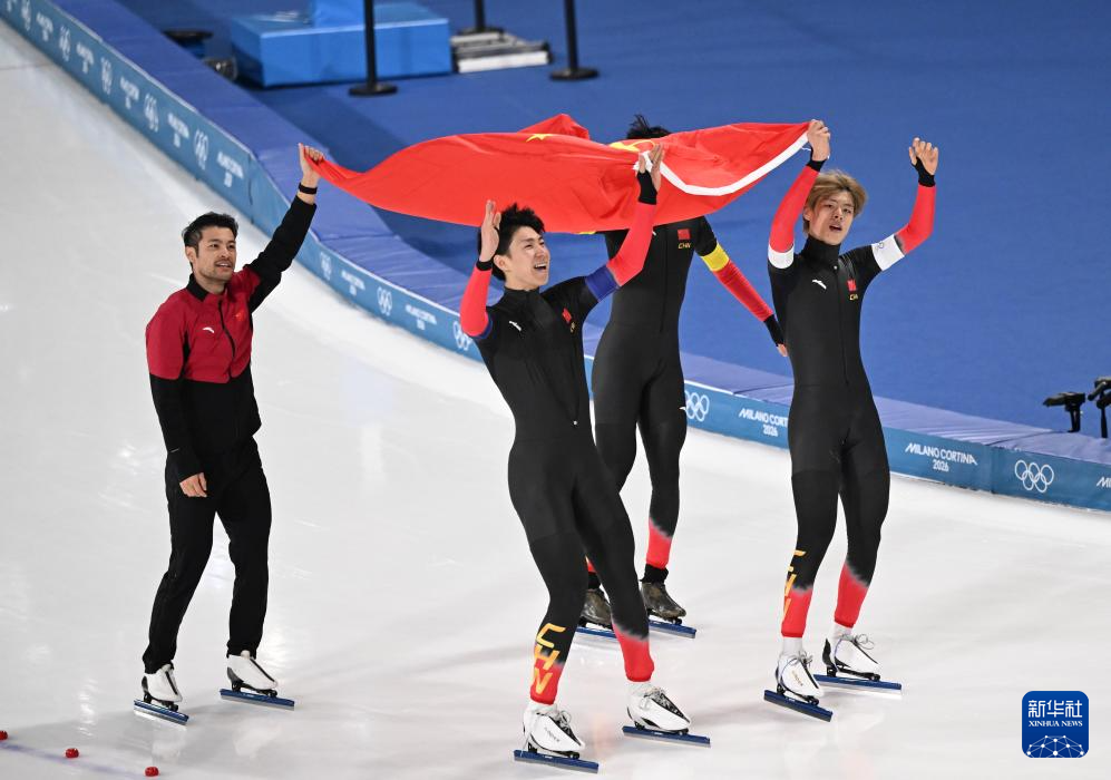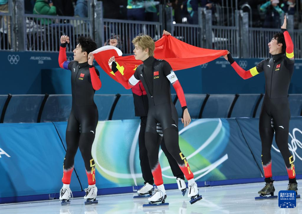 當(dāng)?shù)貢r(shí)間2月17日,在意大利米蘭舉行的米蘭-科爾蒂納冬奧會(huì)速度滑冰男子團(tuán)體追逐B(yǎng)組決賽中,中國(guó)隊(duì)?wèi)?zhàn)勝荷蘭隊(duì),獲得季軍。