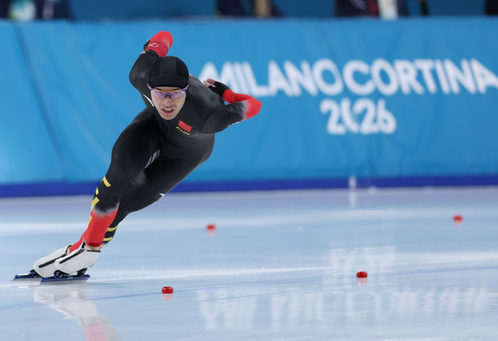 2月11日,寧忠巖在速度滑冰男子1000米決賽比賽中。新華社記者 杜瀟逸 攝