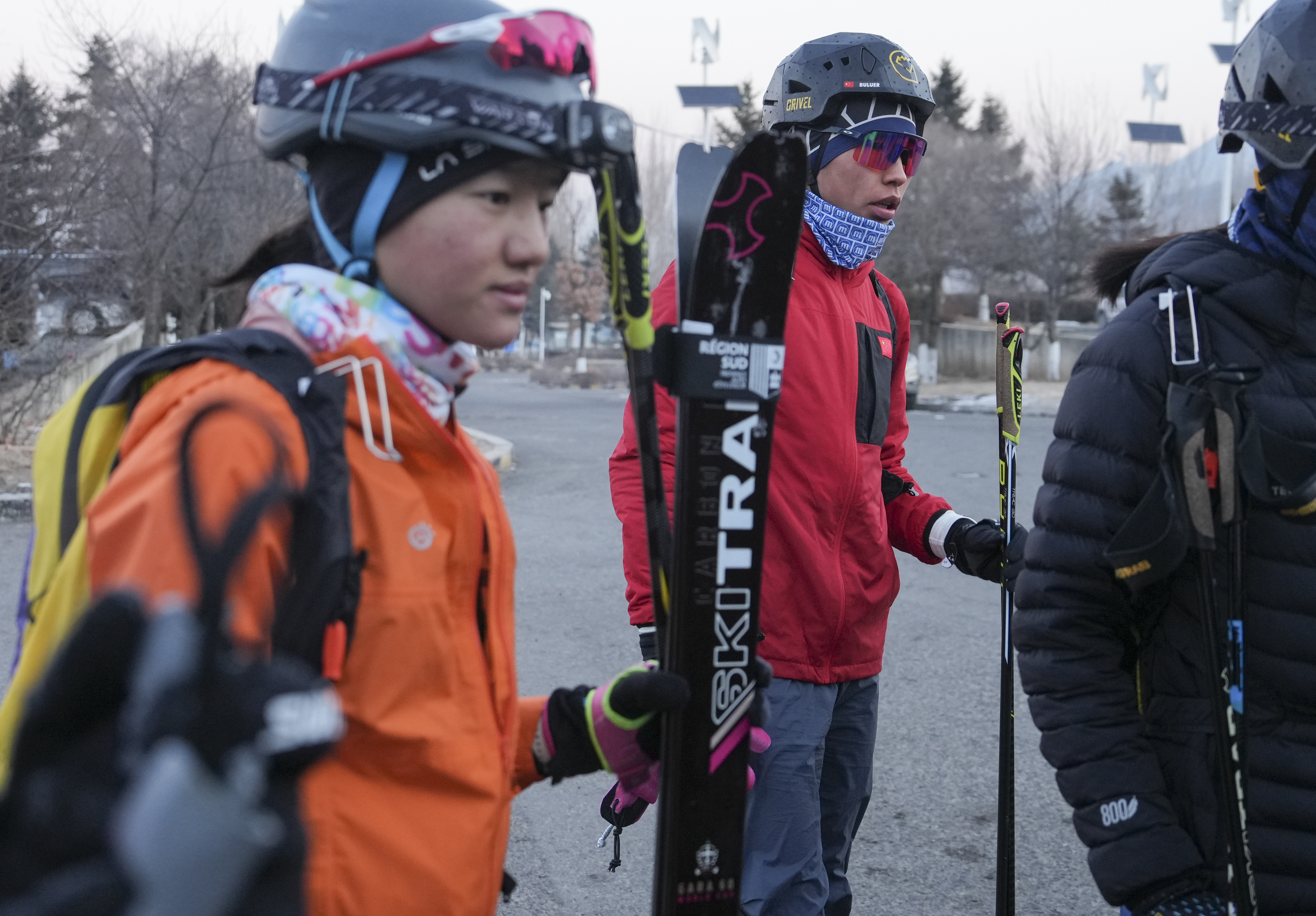 冬奧會(huì)前,布魯爾(右)和次旦玉珍隨國(guó)家滑雪登山集訓(xùn)隊(duì)在吉林省吉林市訓(xùn)練(2025年12月14日攝)。新華社記者 胡虎虎 攝