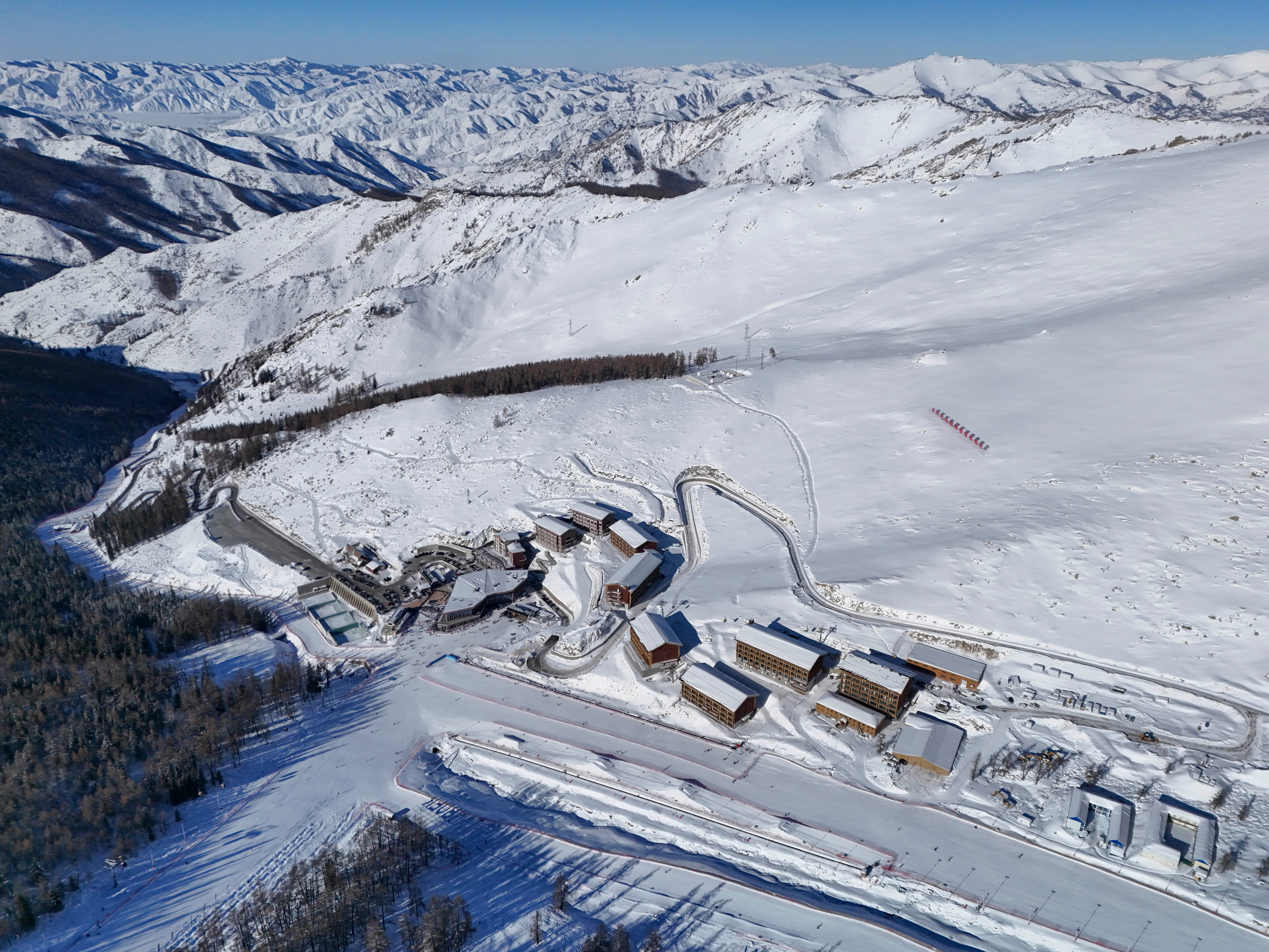 新疆阿勒泰將軍山國(guó)際滑雪度假區(qū)坐落在城區(qū)(2025年1月24日攝,無(wú)人機(jī)照片)。新華社記者 胡虎虎 攝