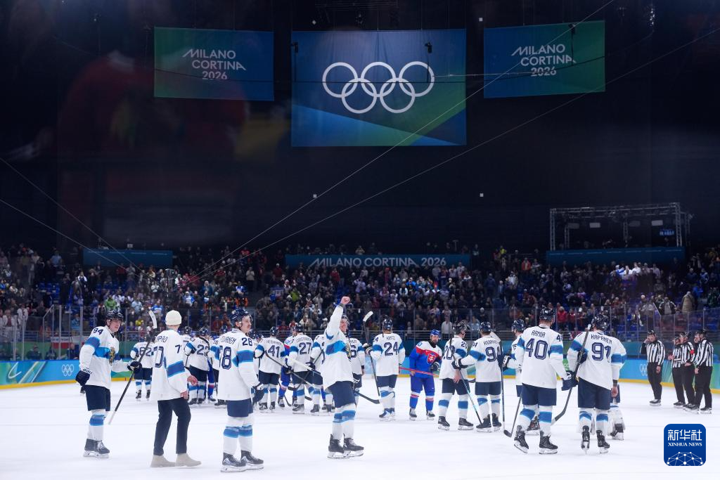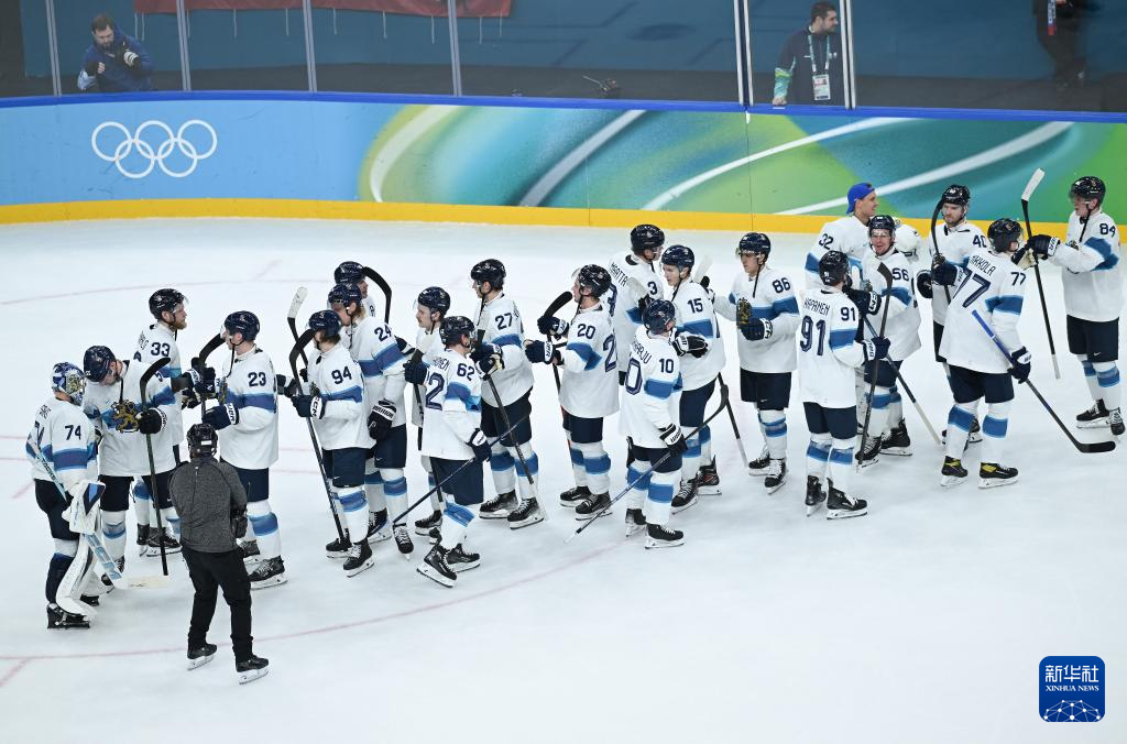 2月21日,芬蘭隊(duì)球員在比賽后慶祝。新華社記者 張豪夫 攝