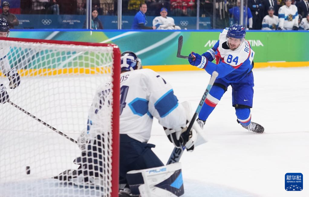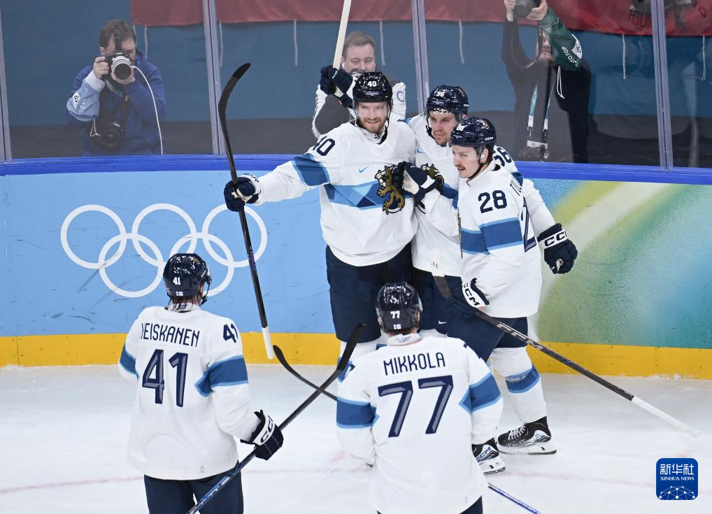 2月21日,芬蘭隊(duì)球員進(jìn)球后慶祝。新華社記者 張豪夫 攝