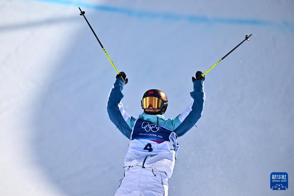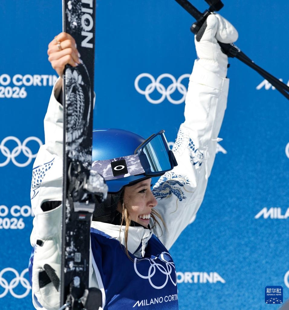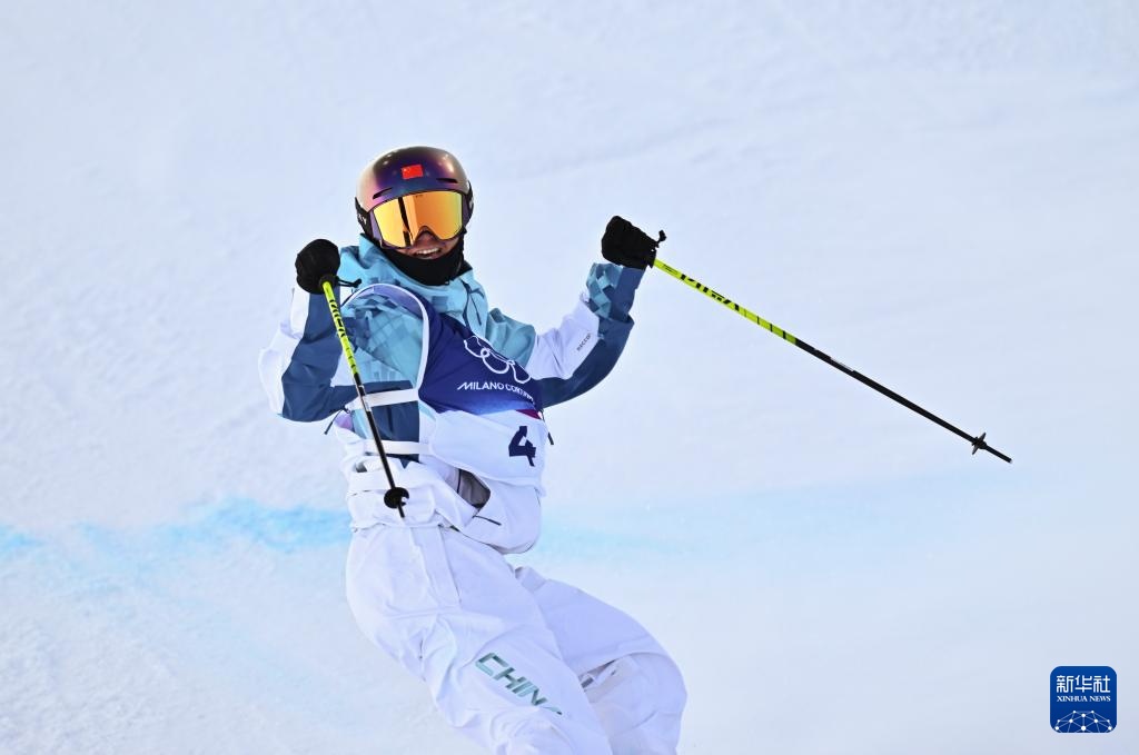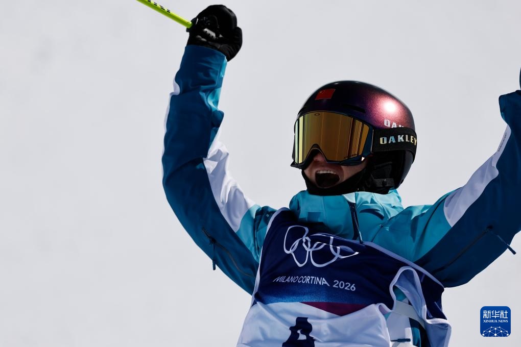 2月22日,中國選手谷愛凌在第二輪比賽后慶祝。新華社記者 張宏祥 攝