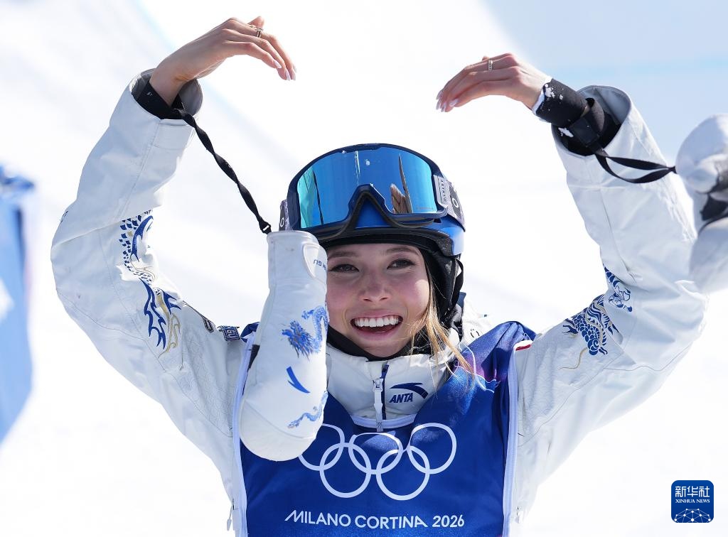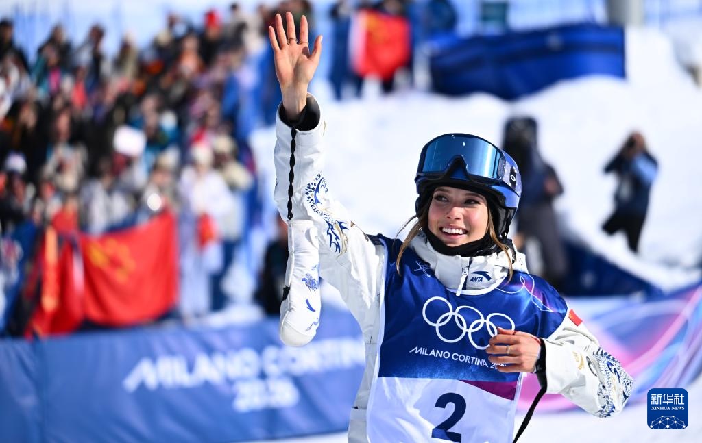 2月22日,中國選手谷愛凌奪冠后向觀眾致意。新華社記者 張宏祥 攝