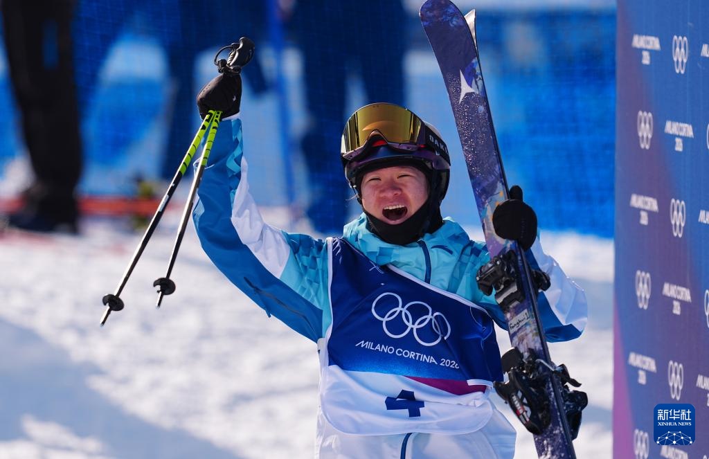 2月22日,中國選手谷愛凌慶祝奪冠。新華社記者 張宏祥 攝
