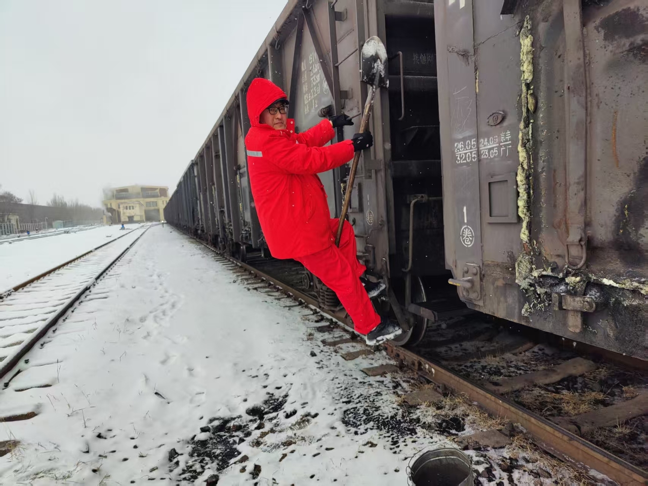 上午8時,三列運煤火車依次駛入廠區,穩穩停靠在園區鐵道線上。寒風凜冽,王磊身著紅色工裝,反復登高攀爬,圓滿完成近200節車廂的煤炭采樣任務。他用腳步丈量每一節車廂,嚴格遵循采樣標準,在車廂對角線三點精準采集40厘米以下深度的煤樣,確保采樣環節零差錯。(沈艷秋)