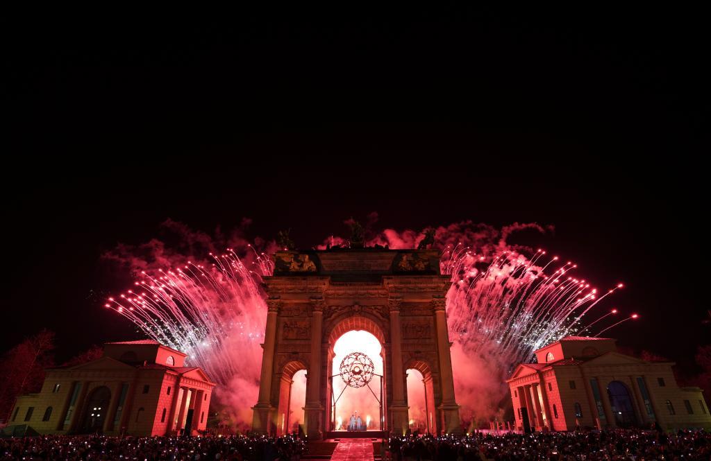 2月6日,在米蘭和平拱門,主火炬被點燃。新華社記者 孫非 攝