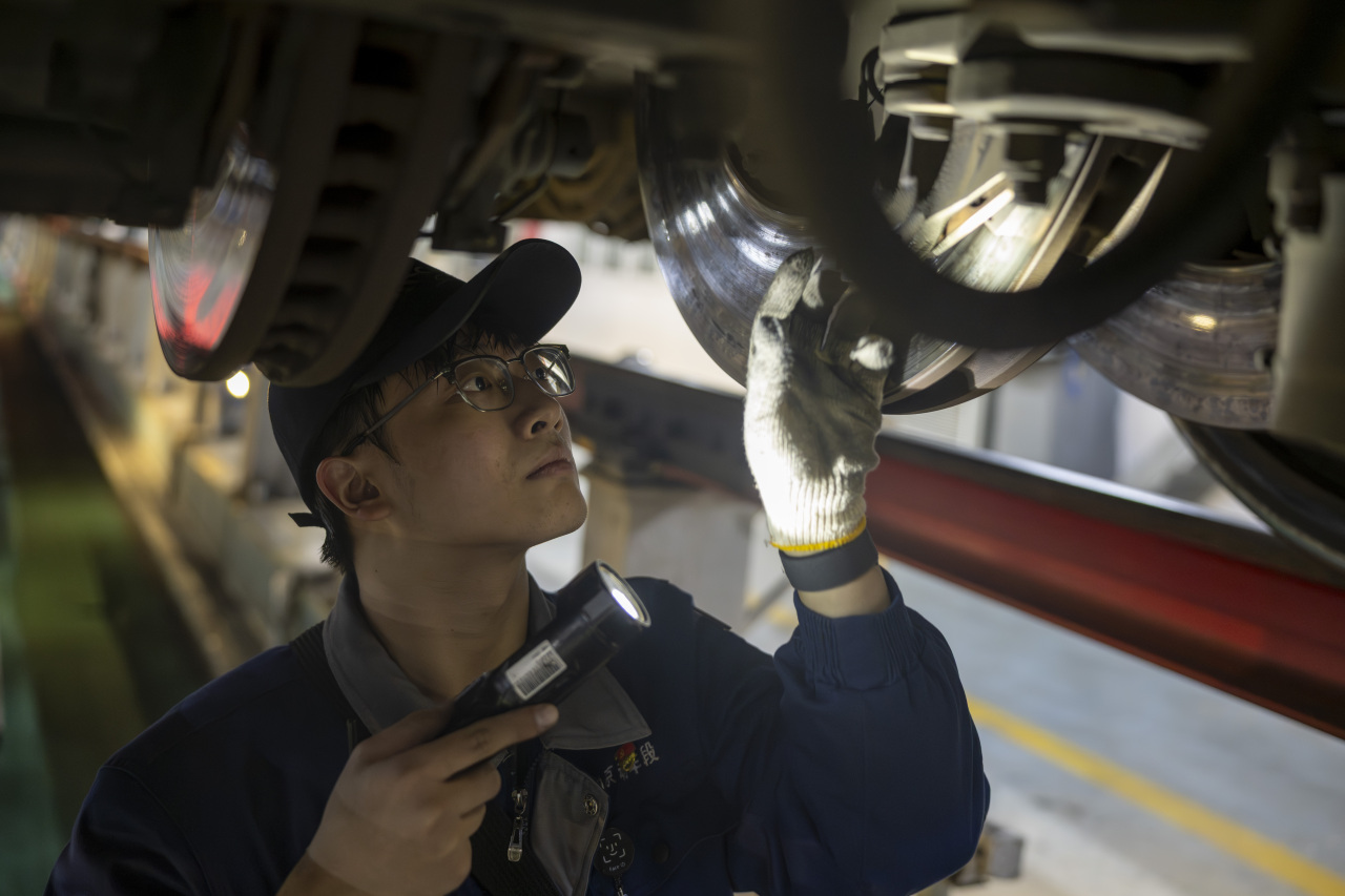 但我不想當“小白”,從那以后,練功場成了我的第二個“宿舍”。閘片更換、制動系統查漏、車鉤分解檢查、轉向架部件狀態確認,一個環節一個環節啃,一個動作一個動作磨。