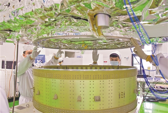 圖為中國科學院微小衛星創新研究院里,科研人員在進行星箭對接試驗。新華社發