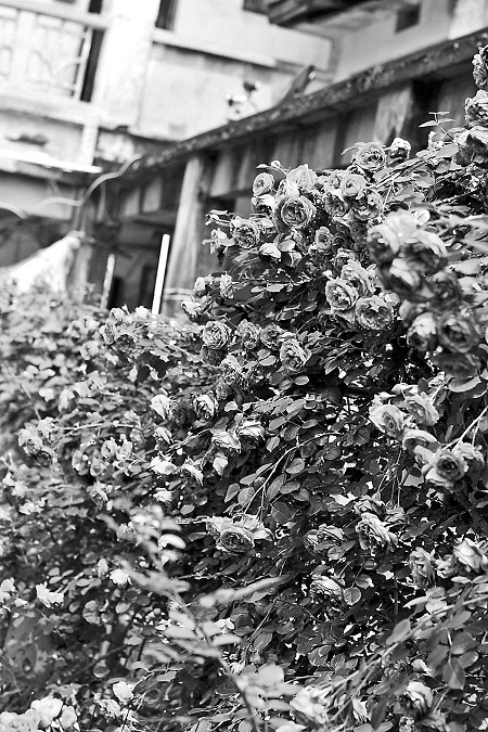 在湘潭大學一處老廠房,漫子種下了許多月季,每到花期那里就會成為網紅打卡地。受訪者供圖