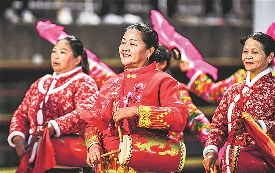 拉拉隊在場上表演。新華社記者 陶亮 攝