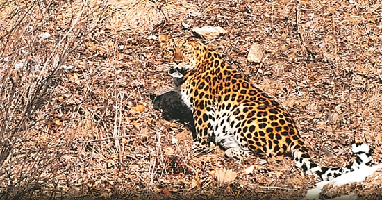 1月8日上午,在吉林省琿春市三道溝林場附近,國網琿春市供電公司兩名職工在上山巡檢途中偶遇一只野生東北豹。這只東北豹在路邊雜草中與二人近距離對視了足足一分鐘。“我來琿春工作17年了,身邊很少有人能看到東北豹,我們真是太幸運了,當時也挺緊張!”目擊者曹仕臣說。(本報記者 彭冰 柳姍姍 通訊員 王濤)