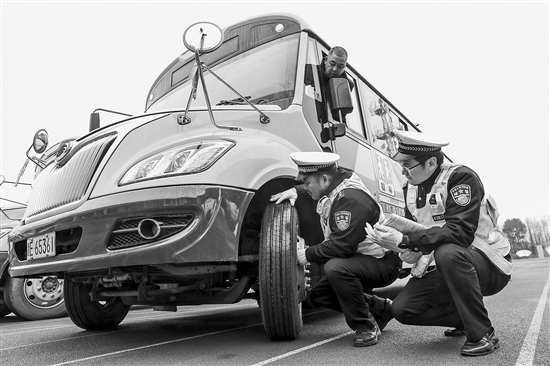 2月20日,浙江省湖州市德清縣公安局交警大隊下渚湖中隊對轄區內的校車開展專項安全檢查,重點檢查校車車況、逃生裝置、滅火器、破窗錘等安全設施的性能,及時排除隱患,確保學生新學期乘車安全。