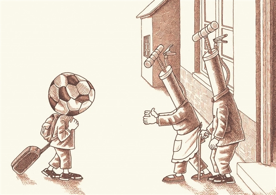 或許生活沒(méi)有那么多儀式,但儀式感有助于我們感知生活。在孫德民筆下,我們的某些感知,被演化為一種更加奇異、更加簡(jiǎn)約,更加令人難以磨滅的感知。遠(yuǎn)奔的“足球”回來(lái)了,爸爸媽媽此時(shí)都是“打氣筒”,他們?yōu)槟愠錃猓瑸槟慵佑停瑸槟愎膭拧4銕滋旌笾胤等松G茵場(chǎng),人們又見(jiàn)到一個(gè)滿血復(fù)活的你,更有滿場(chǎng)飛奔充滿活力和充滿期待的你。