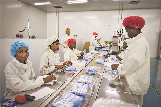 當地時間3月1日,在尼日利亞拉各斯,工人在萊基自貿區的一家日化用品公司車間內工作。新華社記者 韓旭 攝