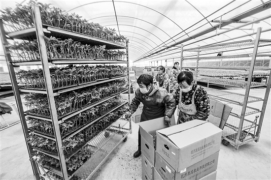 3月6日,在位于浙江嘉興桐鄉(xiāng)市高橋農(nóng)業(yè)科技產(chǎn)業(yè)園的中科康成數(shù)字化育苗車間內(nèi),工人把培育好的種苗裝箱。目前,該育苗基地年產(chǎn)2億株蔬菜、瓜果種苗,主要供應(yīng)長(zhǎng)三角地區(qū)消費(fèi)市場(chǎng)。