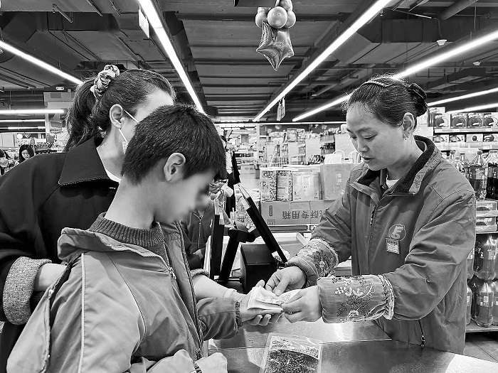 一起來到超市學習的,還有一個名叫小祝的孩子。小祝出生在農村,媽媽、外婆和他一樣,患有先天殘疾。由于家庭特殊,除了自己家,學校就是他去過的最遠的地方。