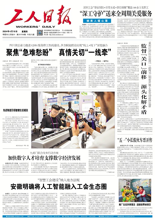 工人日?qǐng)?bào) 2024年04月18日 星期一