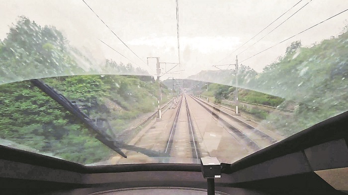 劉偉在高鐵駕駛室里看到的風(fēng)景。