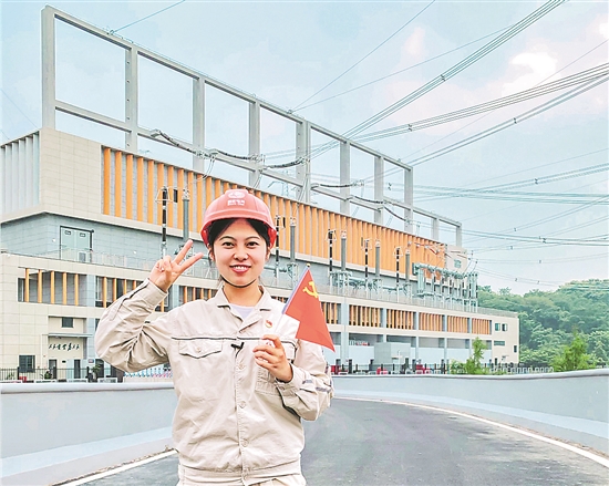徐穎雪與建成投運的500千伏金山變電站合影。