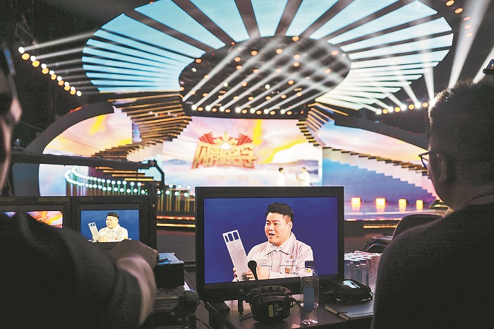 4月24日,北京,2024年“最美職工”發(fā)布儀式錄制現(xiàn)場(chǎng),來(lái)自一汽解放汽車有限公司商用車開發(fā)院試制部的數(shù)控機(jī)床技能師時(shí)敬龍?jiān)谥v述自己的故事。