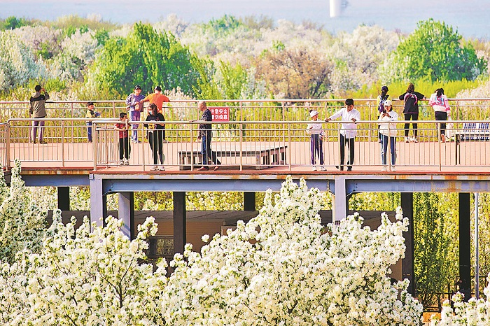 近日,河北省張家口市懷來縣小南辛堡鎮(zhèn)大古城村印象海棠公園中,游人正在園中賞花游玩。據(jù)了解,小南辛堡鎮(zhèn)是目前全國規(guī)模最大的八棱海棠栽培基地,面積和產(chǎn)量均居全國首位。近年來,當(dāng)?shù)負(fù)屪ゾ┙蚣絽f(xié)同發(fā)展和京張體育文化旅游帶建設(shè)機(jī)遇,打造出京張體育文化旅游帶上的新名片。通過發(fā)揮“文化+旅游+節(jié)慶”的作用,持續(xù)舉辦海棠花節(jié),以花為媒,賦能鄉(xiāng)村振興。本報記者 王偉偉 攝