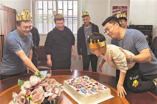 5月1日傍晚,在中鐵七局天津市軌道交通Z2線07標項目部駐地,“五一”國際勞動節在崗的職工們邀請家屬一起到現場,過一季度的集體生日。
