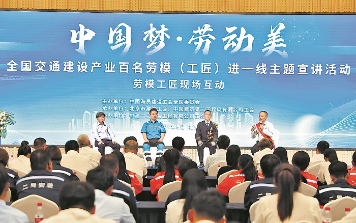 6月21日,“中國(guó)夢(mèng)·勞動(dòng)美”——全國(guó)交通建設(shè)產(chǎn)業(yè)百名勞模(工匠)進(jìn)一線主題宣講活動(dòng)走進(jìn)中建二局安裝公司。活動(dòng)邀請(qǐng)全國(guó)勞動(dòng)模范、大國(guó)工匠、天津港第一港埠有限公司成衛(wèi)東等4位勞模工匠,通過“理論宣講+文藝表演”等形式詮釋勞模精神,激揚(yáng)奮進(jìn)力量。本報(bào)通訊員 馬馳海 攝