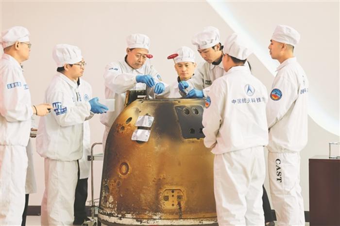 6月26日下午,嫦娥六號返回器開艙活動在中國航天科技集團五院舉行。