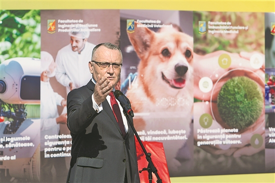 當(dāng)?shù)貢r(shí)間6月25日,在羅馬尼亞布加勒斯特,布加勒斯特農(nóng)業(yè)科學(xué)與獸醫(yī)學(xué)大學(xué)校長(zhǎng)肯佩亞努在聯(lián)合實(shí)驗(yàn)室的揭牌儀式上致辭。新華社發(fā)(克里斯泰爾 攝)