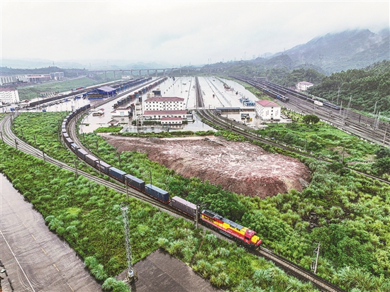 6月27日,西部陸海新通道中老泰馬跨境鐵路班列在重慶江津小南埡站發車。