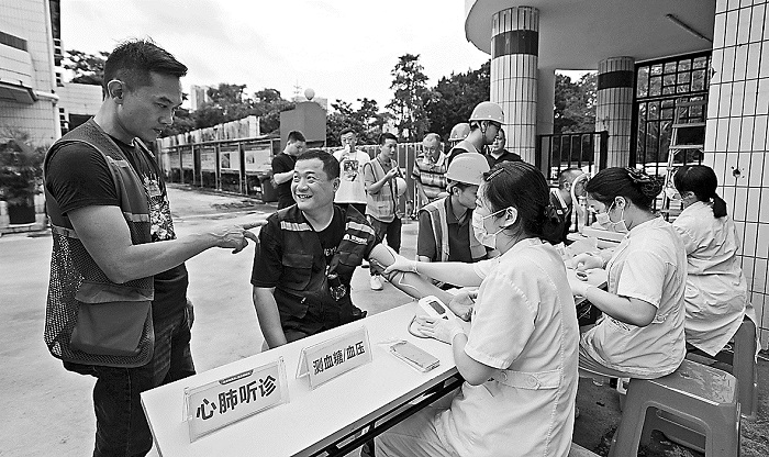 為提高一線建設者自救互救能力,近日,來自廣東深圳萬豐醫院的醫護人員前往深圳市寶安區某項目建設工地開展義診活動,為300余名工友提供血壓血糖測量、心肺聽診、視力篩查等免費診療服務,并對相關疾病及并發癥進行詳細講解。同時,活動現場還有急救培訓講師采用理論講解、實操訓練和學員互動相結合的方式,為工友們帶來一場生動的“體驗式”急診急救培訓。