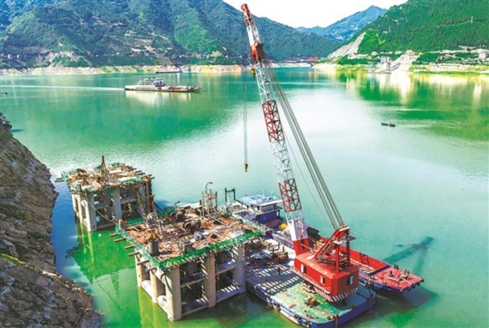 6月29日,船舶從三峽通航船舶秭歸舊州河錨地施工工地前開過。