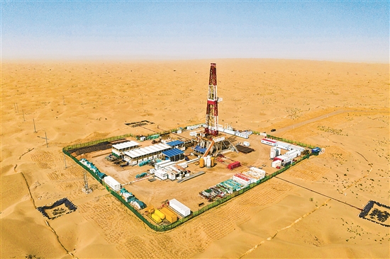 新疆各大油田今年上半年產量齊增,天山南北為保障國家能源安全加“油”增“氣”。圖為中國石化西北油田一油井鉆井現場。