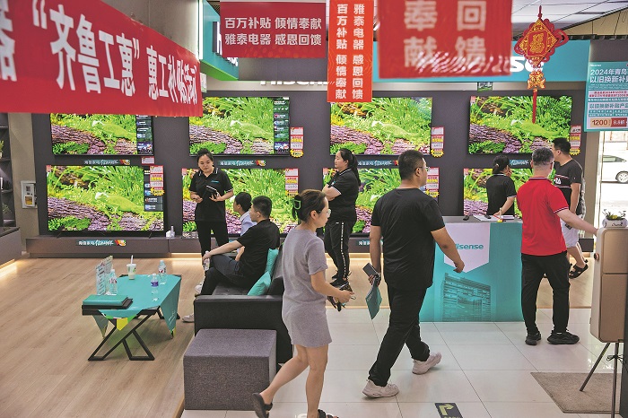 隨著政策利好的釋放,消費者給商家的反饋也愈發明顯。該輪以舊換新也正進一步激發出家電消費潛能,消費者的購買熱情持續高漲。“這次補貼力度還是很大的,店里的人流量比平日多了一倍,不少持觀望態度的消費者在了解完政策后會當場下單。”海信專賣店的一位工作人員介紹說。