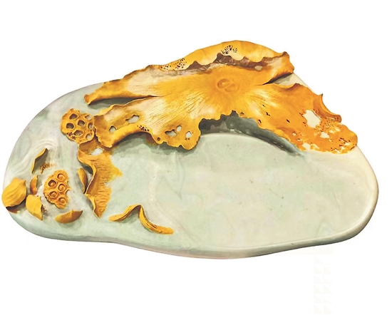《荷塘秋韻》獲全國石雕石刻設計大賽首屆“伍丁杯”大工匠現場雕刻競賽銀獎。受訪者供圖