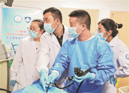 胡健衛(wèi)是復(fù)旦大學(xué)附屬中山醫(yī)院內(nèi)鏡中心副主任醫(yī)師。2023年7月,他主動報名成為第九批醫(yī)療人才“組團(tuán)式”援藏專家之一,來到日喀則市人民醫(yī)院工作。進(jìn)藏工作后不久,胡健衛(wèi)根據(jù)自身經(jīng)驗,不僅打造了適合當(dāng)?shù)貙嶋H情況的內(nèi)鏡下新技術(shù)——超聲內(nèi)鏡檢查術(shù),還通過師帶徒的形式做好西藏地區(qū)醫(yī)學(xué)內(nèi)鏡人才隊伍的“傳幫帶”工作。