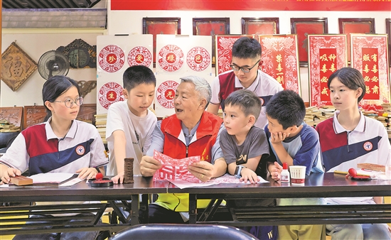 7月14日,在福建省寧德市屏南縣耕讀文化博物館非遺拓片技藝傳習所,學生們在學習非遺拓片技藝制作。暑假期間,孩子們通過參加形式多樣的活動,豐富暑期體驗,拓展興趣愛好,樂享快樂時光。新華社發(王旺旺 攝)
