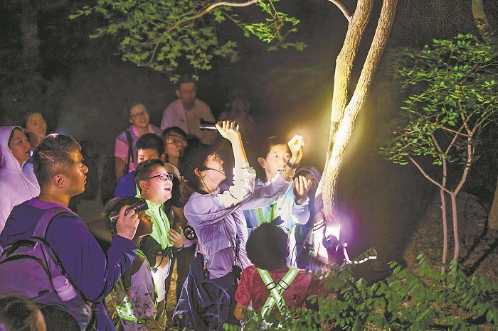 日前,在北京香山公園內(nèi),小學(xué)員和家長(zhǎng)在專(zhuān)業(yè)導(dǎo)師的帶領(lǐng)下,伴隨著蟲(chóng)鳴聲、蛙叫聲開(kāi)啟了神秘的“奇妙夜之旅”。