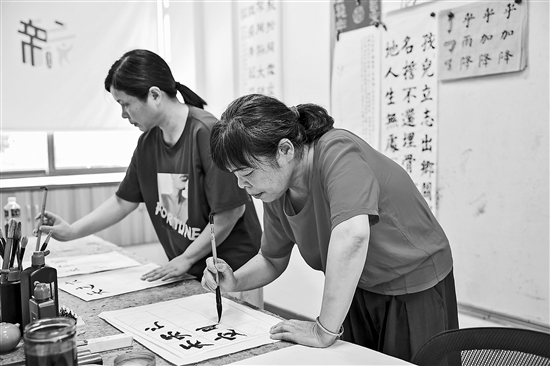 近日,居民在浙江省嘉興市南湖區東柵街道新南社區鄰里中心寫書法。暑期期間,該區下屬各街道社區及鄉鎮依托黨群服務中心、文明實踐站等場所,重點關注“一老一小”群體,在炎炎夏季讓居民在“家門口”就能享受便利多樣的暑期活動。新華社記者 徐昱 攝