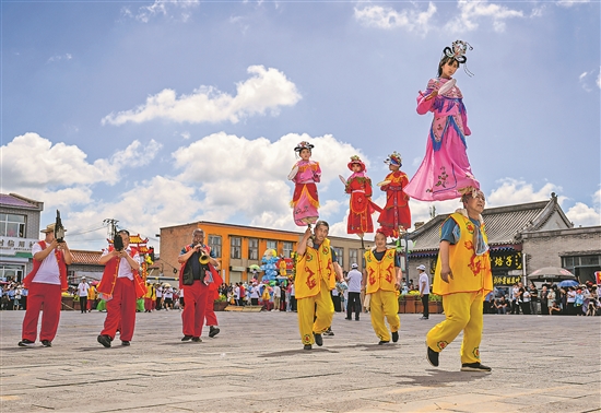 7月25日,腦閣表演隊伍行進在隆盛莊街道上。
